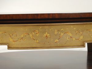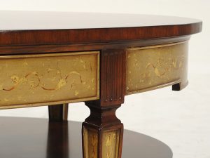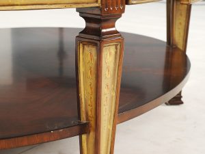 Coffee table with crotch mahogany veneer and painting gold inlaid